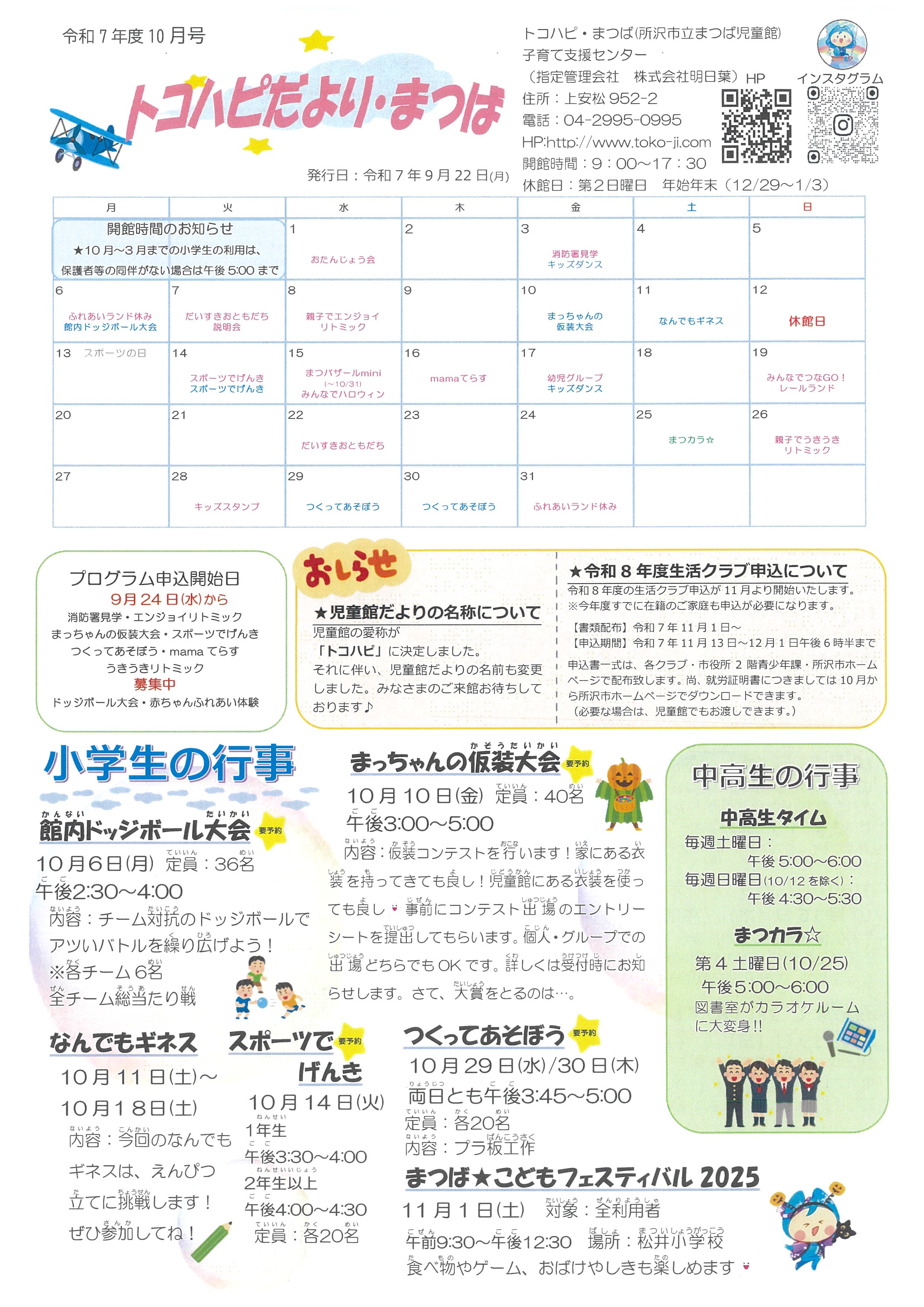 詳細は、『まつば児童館便り 10月号』、またはインスタグラムをご覧ください。