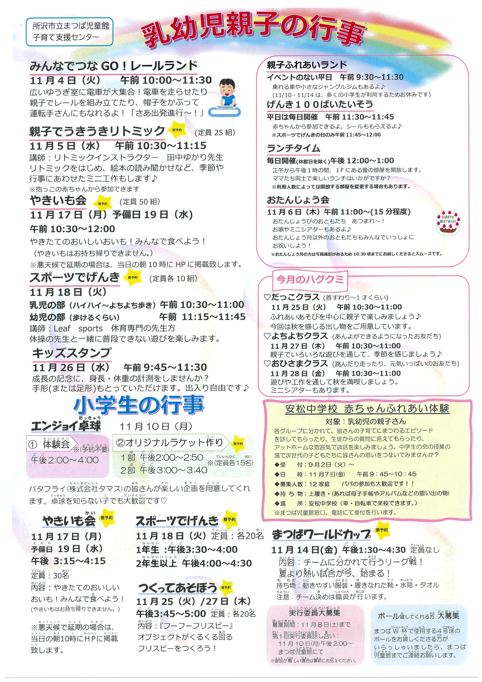 詳細は、『まつば児童館便り 11月号』、またはインスタグラムをご覧ください。